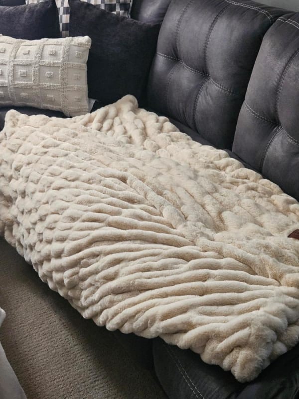 Indulge in a premium, high-quality fabric that is fully vegan and easy to care for. It's the essential cozy accessory your couch and bed have been missing.